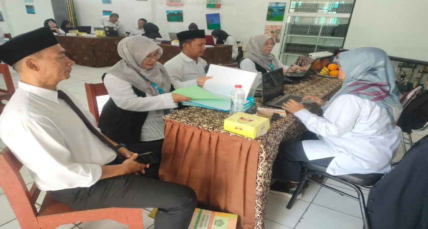 Selanjutnya pemeriksaan dokumen PKKM dinilai oleh Pengawas Kemenag Kota Cimahi Bapak Dr. Rudy Kurniawan, M.Pd dan Hj. Pipin Supini, M.Pd. Kurang lebih ada 300 instrumen yang diperiksa oleh tim penilai mulai dari Dokumen Usaha Pengembangan Madrasah, Manajerial, Kewirausahaan dan Supervisi.